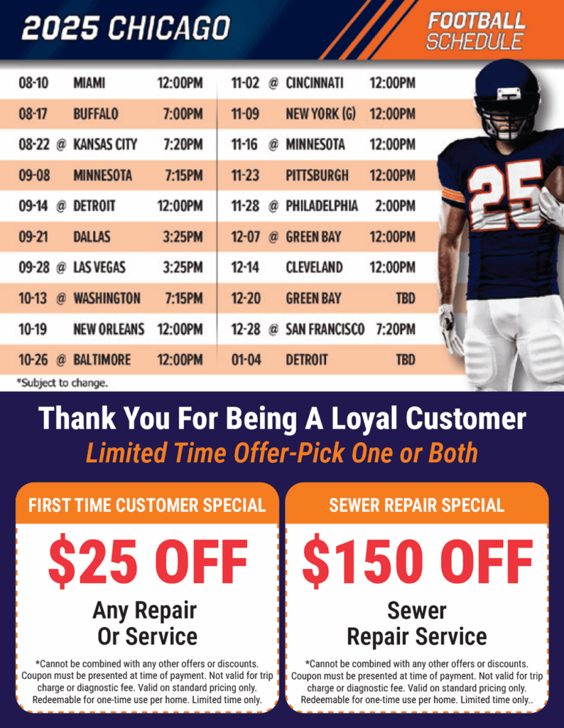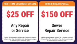 Sewer Repair Special: Get $150 off your sewer repair service. (Cannot be used towards dispatch fee. Cannot be combined with any other offer. Limited time offer. Must present coupon to redeem. Special conditions apply.)